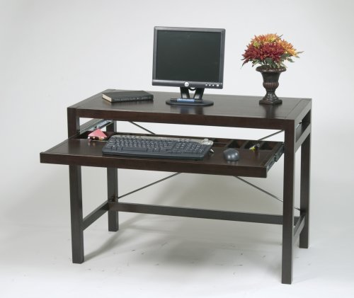 Computer Desk, Espresso finish, Solid wood and veneer construction, Large pullout keyboard tray with storage space, Easy to assemble