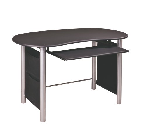 Multi-media computer desk, Black finish, Polyurethane finish and powder coated Steel frame, Pullout keyboard tray, Side magazine pocket